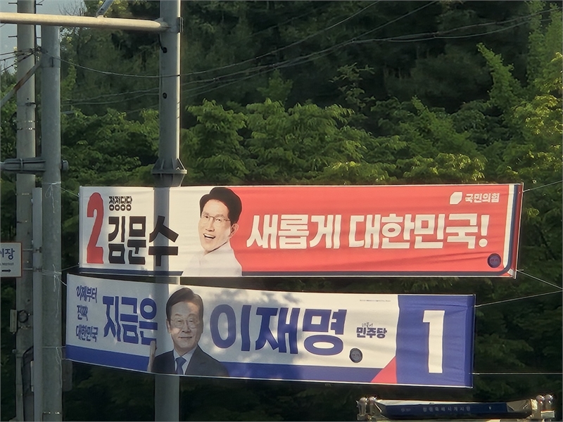 공식 대선 선거운동이 시작된 12일 경남 창원시 의창구의 한 대로변에 대선 후보 현수막이 걸려 있다. 독자 정재송 씨 제공