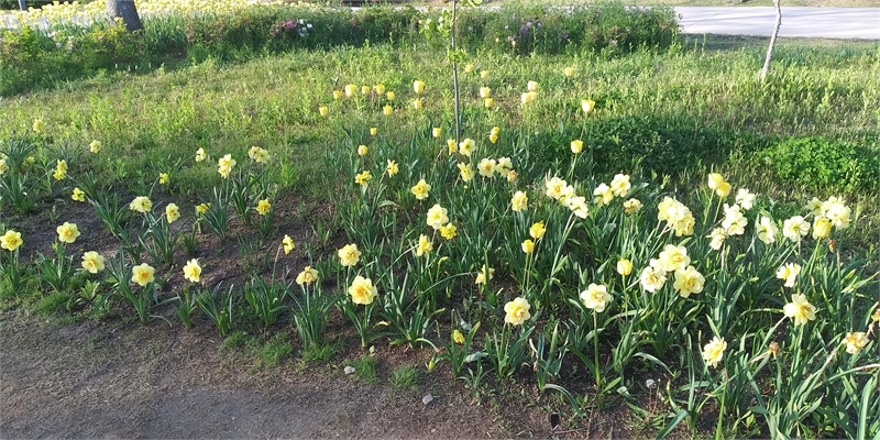 수선화 모습. 튤립 화단 중간 중간에 수선화가 식재돼 있다