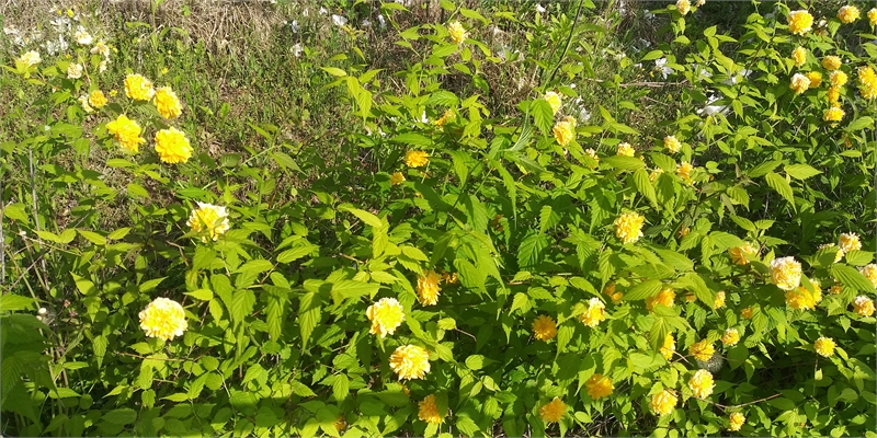 황매화들이 만개 시기를 지나 '한물 가는' 모습이다.