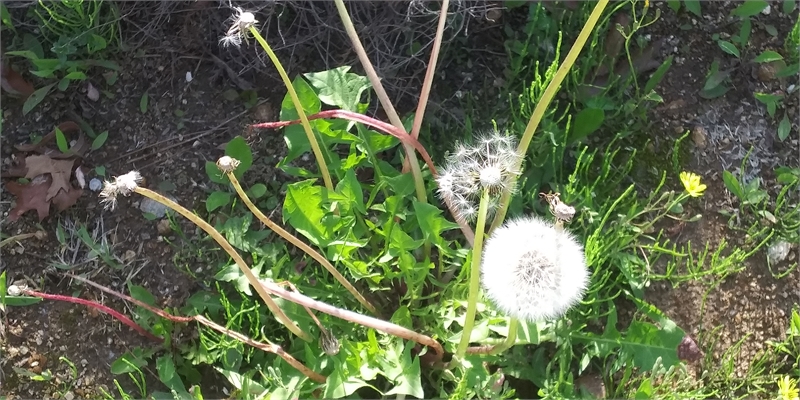 '열린숲'에서와 마찬가지로 민들레꽃이 민들레홀씨로 변했다. 줄기 대부분엔 민들레홀씨마저 바람에 흩날려 어디론가 날아가 앙상한 줄기만 돋보인다.