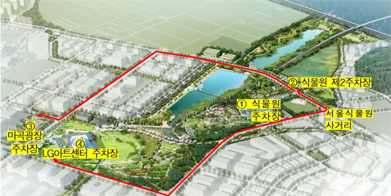 서울식물원 주차장 위치도. 승용차로 방문하는 분들을 위해 싣는다. 서울시