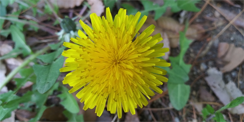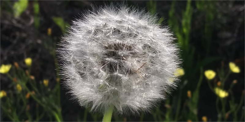 노란 순백색으로 화사하게 핀 민들레꽃 자태. 민들레꽃은 꽃대 맨위에 피는 두상화로, 작은 꽃잎 100~200개가 모여 한 송이를 이루는 통꽃 형태를 보인다. 사진으로 보니 길가에 대충 자리해 피었다고 지나칠 꽃이 절대 아니다. 아주 예쁘다.