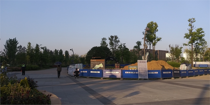 마곡나루역에서 나와 서울식물원 '열린숲' 가운데로 걸으면 산책길이 나 있다. 공사 중인 모습