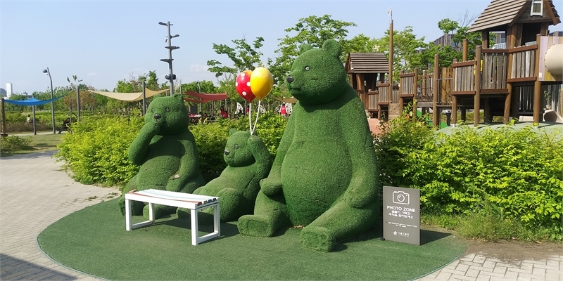 LG사이언스파크 쪽 입구로 들어서면 나오는 '숲문화학교' 앞 놀이터에 설치된 곰가족 조형물. 최근 한 시민이 자녀 한 명의 이 조형물이 정부의 다둥이 정책에 맞지 않는다며 5마리의 조형물을 설치할 것을 주장해 관심이 컸었다. 서울식물원 측은 조형물이 낡아 조만간 철수할 것이라고 밝혔다. 이곳은 아이를 동반한 가족들이 무척 많이 찾는다.