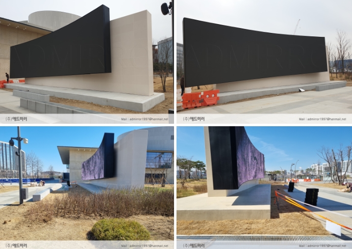 미디어파사드 설치 공사를 한 업체인 '애드 미러'가 자사의 블로그에 올린 공사 후의 모습과 노출 중인 모습. 지난 2022년 4월 완공했다. '애드 미러' 블로그 캡처