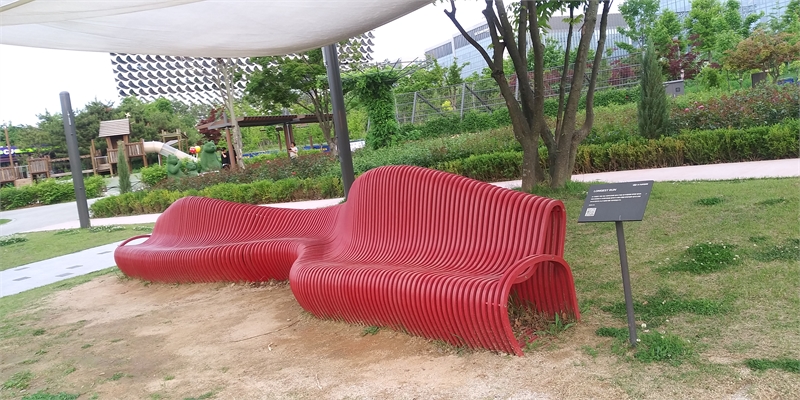 곰가족 조형물이 있는 '숲문화학교' 앞 놀이터 인근에 자리한 독특한 형태로 만들어진 의자
