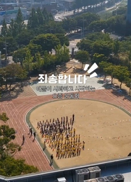 이 영상 속에는 100명 정도의 초등학생이 운동장 중앙에 모여 아파트 단지 방향을 향해 일제히 "죄송합니다. 죄송합니다. 오늘 저희 조금만 놀게요. 감사합니다"라고 외쳤다.