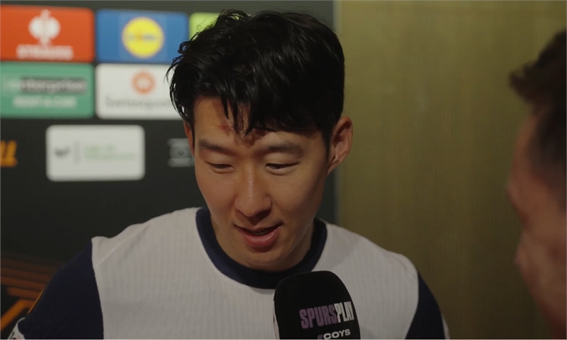 손흥민이 우승 후 토트넘 구단 방송과 인터뷰를 히고 있다. 토트넘