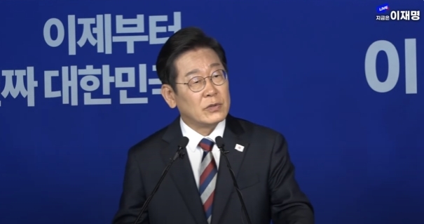 더불어민주당 이재명 대선 후보가 25일 서울 여의도 중앙당사에서 가진 기자간담회에서 모두 발언하고 있다. 델리민주