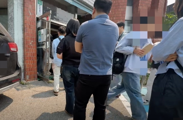 제21대 대선 사전투표 첫날인 29일 서울 서대문구 옛 신촌동주민센터 투표소 입구에서 한 유권자가 투표용지와 회송용 봉투를 들고 투표소 입구 밖으로 이어진 줄 맨끝으로 걸어가고 있다. 유튜브 채널 '애국청년 박준영' 캡처