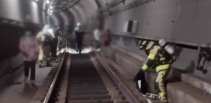 소방 대원들이 출동한 가운데 지하철 승객들이 뜀박질 하고 있다. 서울교통공사