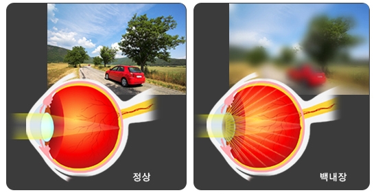백내장이란 카메라의 렌즈에 해당하는 눈 속의 수정체가 어떤 원인에 의해 뿌옇게 혼탁하게 보여 시력 장애가 발생하는 질환이다. 백내장이 발생한 위치와 정도에 따라 다양한 모습으로 보인다.