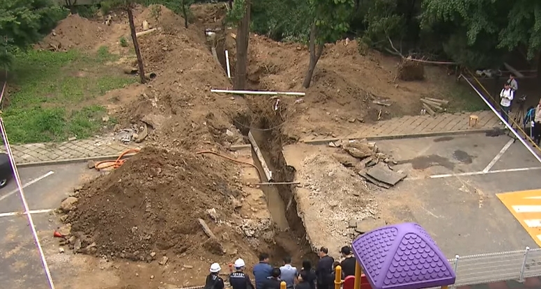 서울 강남구 대치동 은마아파트 노후 하수관 교체 공사 현장. 흙더미가 무너져 현장 작업자 한 명이 매몰돼 숨지고 한 명이 다쳤다. KBS 뉴스 캡처