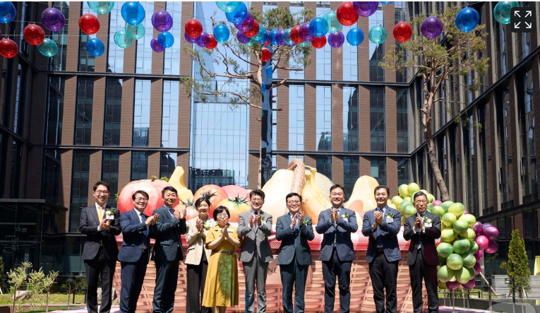 12일 서울 강서구 원그로브에서 열린 개장식 모습. 원그로브는 서울에서 3번째로 큰 업무·상업 복합시설로 건물 중앙에는 자연 채광이 스며드는 정원과 사계절 조경이 마련돼 있다. 서울식물원과 지하 도보로도 연결된다. 원그로브