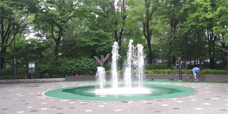 지난 17일 서울 강서구의 한 아파트 분수대에 분수가 솟구치고 있다. 이상 정기홍 기자