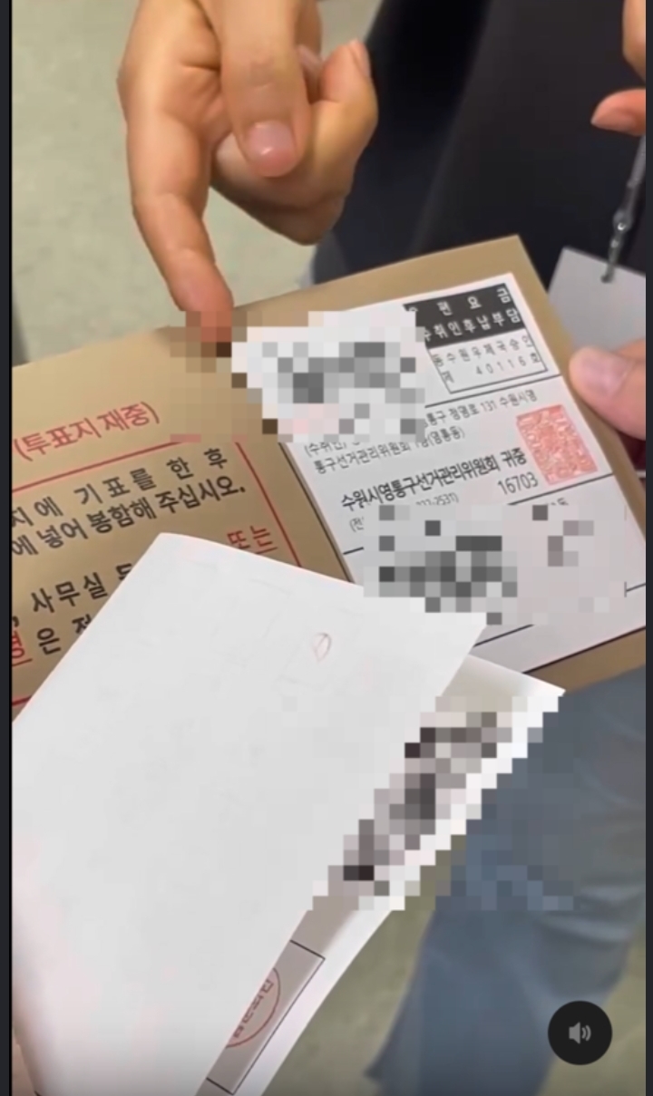 앞서 대선 사전투표 둘째날인 지난 5월 30일 용인시 수지 성복동주민센터 참관인은 "회송용 봉투에서 더불어민주당 이재명 후보에게 기표된 용지가 나왔다"며 112에 신고했다.