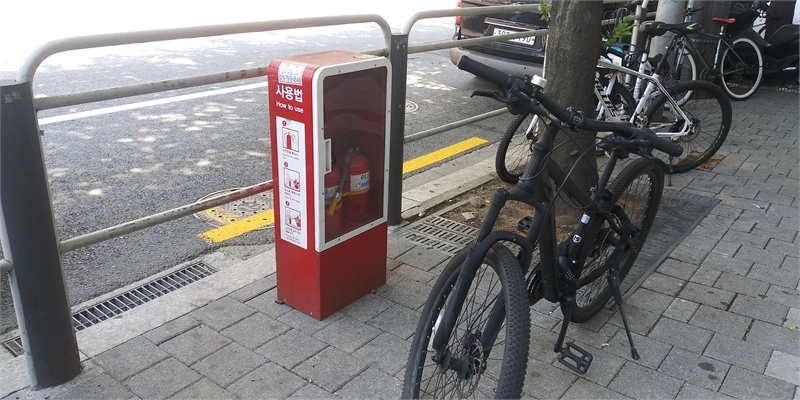 아래 사진에서 보듯, 당시 이 소화기 보관함은 기초 부분이 매우 부실해 보였는데 지금은 단단해 보이네요.