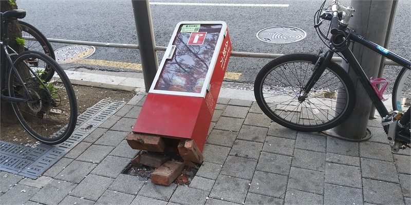 소화기 보관함이 넘어진 곳이 한동안 빈 공간으로 남아 있어 다른 곳으로 옮겼나 생각했었습니다. 시민들이 많이 오가는 지하철 입구이기에 소화기 보관함은 꼭 있어야 하겠지요.