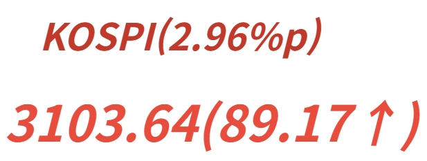코스피 종가가 3100선을 돌파한 것은 지난 2021년 9월 27일(3133.64) 이후 3년 9개월 만이다.