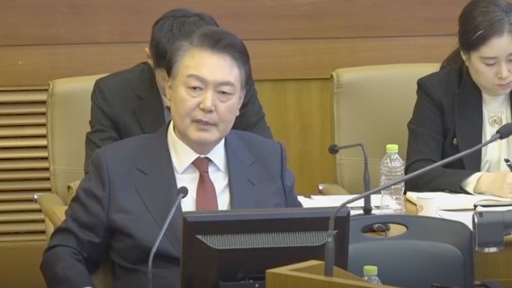 윤석열 대통령이 헌법재판소에서 열린 탄핵심판 사건 5차 변론기일에서 발언을 하고 있다. 헌재