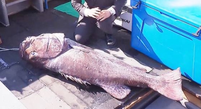 이날 낚시꾼 두 명은 10여 분간의 사투 끝에 길이 170cm, 무게 100kg의 돗돔을 끌어올렸다.