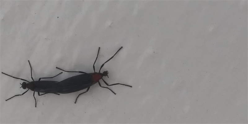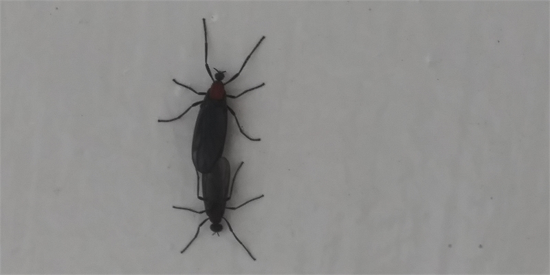 서울 도심에 나타난 일명 '러브버그' 붉은등우단털파리. 등 쪽이 븕은색을 띤다. 두 마리가 교접 중인 모습이다.