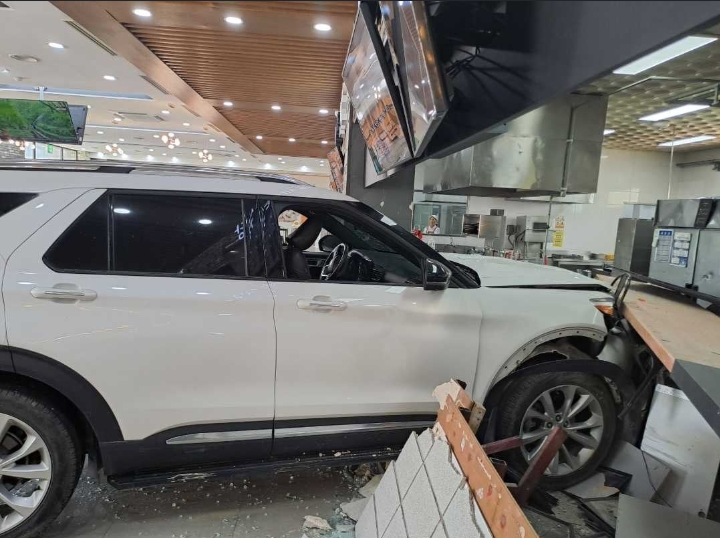 80대 여성 운전자가 몰던 SUV 차량이 고속도로 휴게소로 돌진해 10명이 팔이 부러지는 등 중경상을 입었다. 차량은 휴게소 건물을 뚫고 들어가 식당 주방을 부순 뒤에야 멈춰 섰다.
