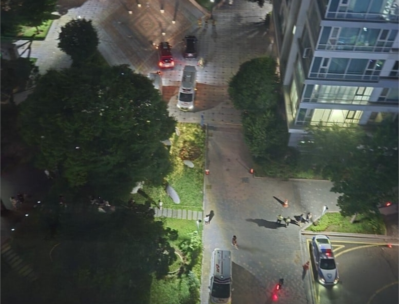 60대 아버지가 30대 아들에게 사제 총을 발사해 숨지게 한 아파트에 구급차와 경찰차가 충돌해 있다. 피의자는 서울 강남에서 검거됐다. 에펨코리아.