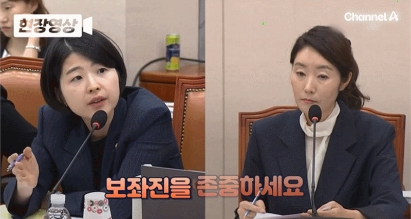한지아 국민의힘 의원이 14일 강선우 여성가족부 장관 후보자 인사청문회에서 강 후보자에게 질의하고 있다. 채널A