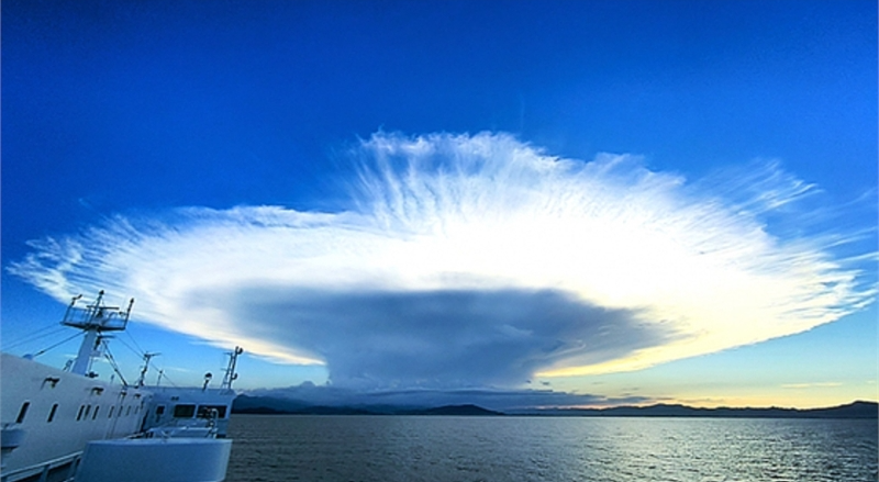 첫 제보자는 "후지산을 본 것처럼 엄청난 크기였다"고 말헀다. 현지 매체는 "위성사진에서도 확인될 만큼 커다란 구름"이라고 전했다.