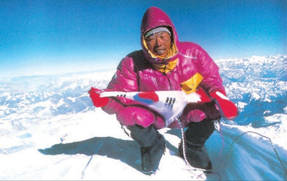 1987년 12월 22일 한국인으로는 처음으로 겨울철에 에베레스트 정상(8848m)을 정복했다. 2017년 5월엔 63세로 국내 최고령 에베레스트 등정), 국내 최다 에베레스트 등정(6회) 기록을 썼다.