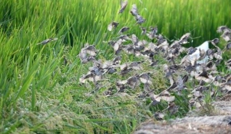 지난해 처서(處暑) 이후 이삭이 고개를 숙인 벼논에 찾아든 참새떼. 경남 거창군