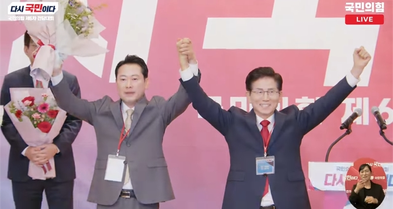 국민의힘은 26일 오전 서울 여의도 국회도서관 대강당에서 제6차 국민의힘 전당대회를 열고 당대표 선거 결선 결과 ‘반탄파’ 장동혁 후보(재선·충남 보령서천)가 신임 당대표로 선출됐다고 밝혔다.