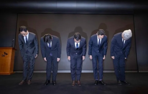 유영상 대표 등 SK텔레콤 임원들이 유심 해킹 사고와 관련해 머리 숙여 사과하고 있다. SK텔레콤
