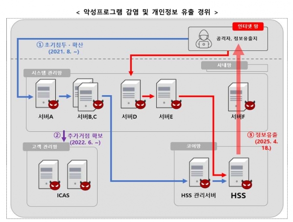 이후 4월 18일 홈가입자서버(HSS) DB에 저장된 9.82GB 규모의 개인정보를 외부로 유출했다.