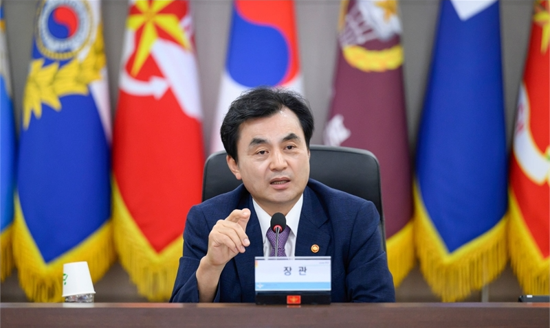 안규백 국방장관이 지난 5일 국방부 지휘부 회의실에서 군기강 확립 주요지휘관회의를 주재하고 있다. 국방부