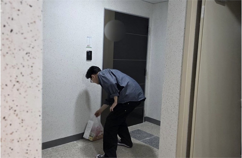 이어 치킨을 담은 비닐봉지를 들고 차량에 타거나 걸어서 배달지까지 이동하는 모습, 챙겨온 치킨을 고객 현관문 앞에 두는 모습도 올렸다.