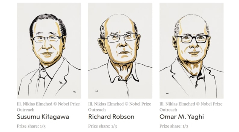 스웨덴 왕립과학원 노벨위원회는 8일(현지 시각) "2025년 노벨 화학상 수상자로 일본 스스무 기타가와(74) 교토대 교수, 호주 멜버른대 교수인 리처드 롭슨(88·영국 출신), 미국 UC버클리대 교수인 오마르 M. 야기(60·요르단 출신)를 선정했다”고 밝혔다.