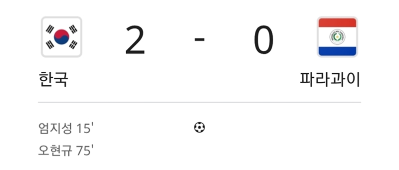 홍명보 감독의 대표팀은 이날 경기에서 전반 15분 엄지성의 선제골, 후반 30분 오현규의 추가 골을 앞세워 파라과이에 2-0으로 승리했다.