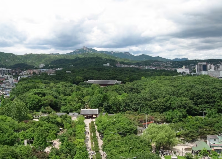 세운상가 쪽에서 종로대로 건너편에 있는 종묘 전경. 국가유산청